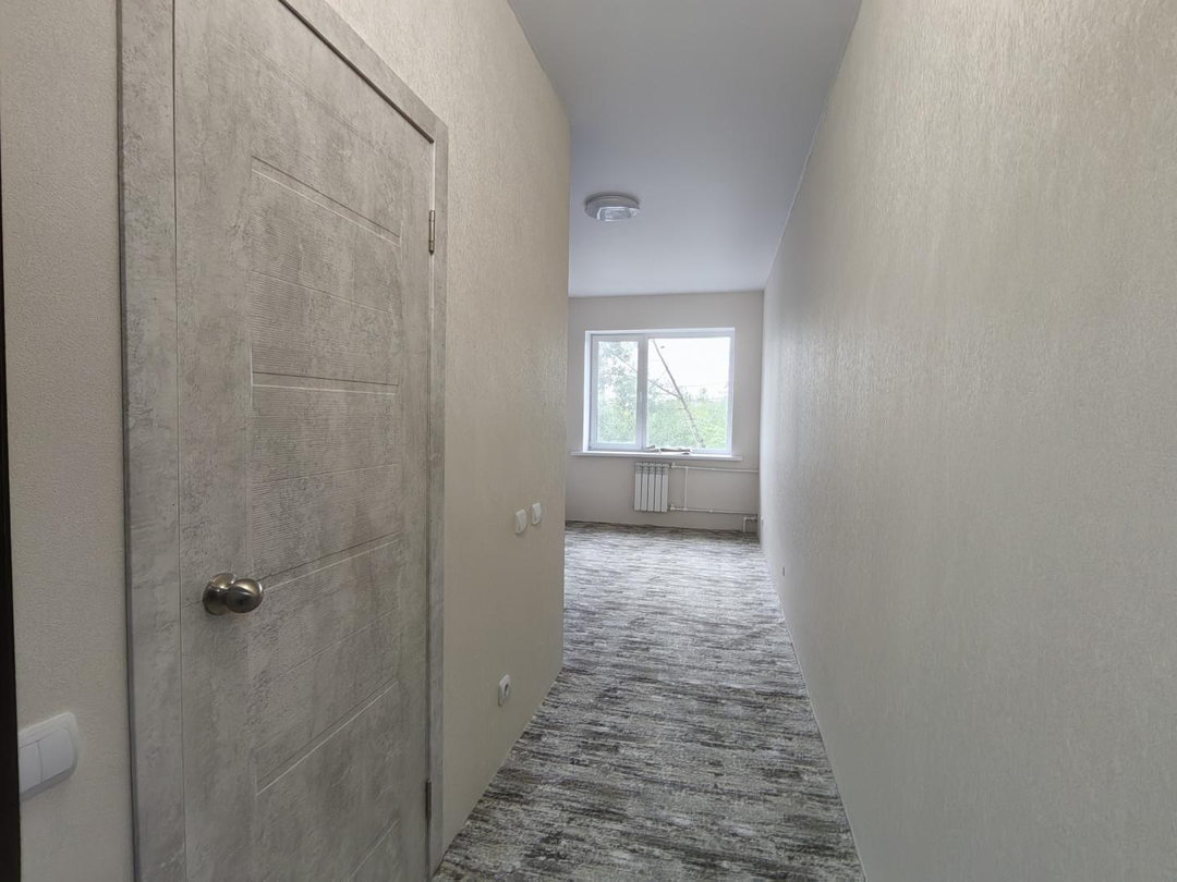 Чистовая отделка включает в себя:Стены обои Натяжной потолок Разводка всех коммуникацийНа полу линолеум Установлены двери (входная металлическая и дверь в санузел)Установлены счетчики на воду и электроэнергию