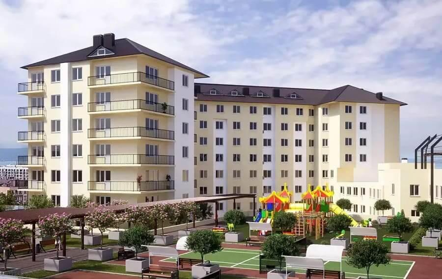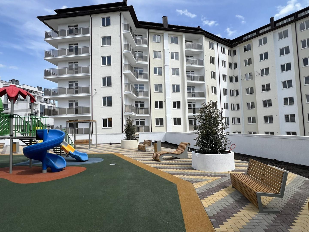 Двор ЖК «Жемчужина Мысхако» полностью обустроен для создания приятной и безопасной атмосферы как для детей, так и для взрослых. Уют и красоту добавит ландшафтное озеленение.