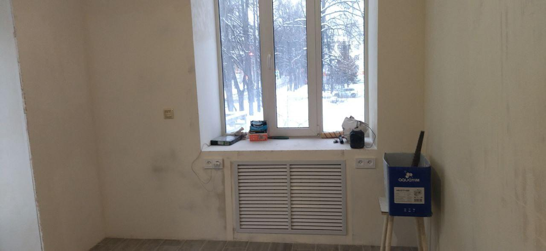 Общая площадь 17м2.+ балкон на улицу и в парковую зону. При ремонте выровнены стены, замена стеклопакетов, труб и радиаторов, на полу керамогранит, теплый пол с регулятором температуры. В студии выделено место для раздельного собственного санузла, установлен унитаз, выведена вода и канализация в душевую, кухонную зону. Установлены розетки, заменена электрическая проводка. Покупателям остается стиральная машина.