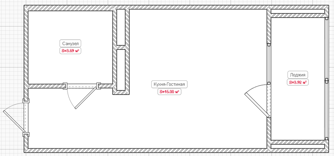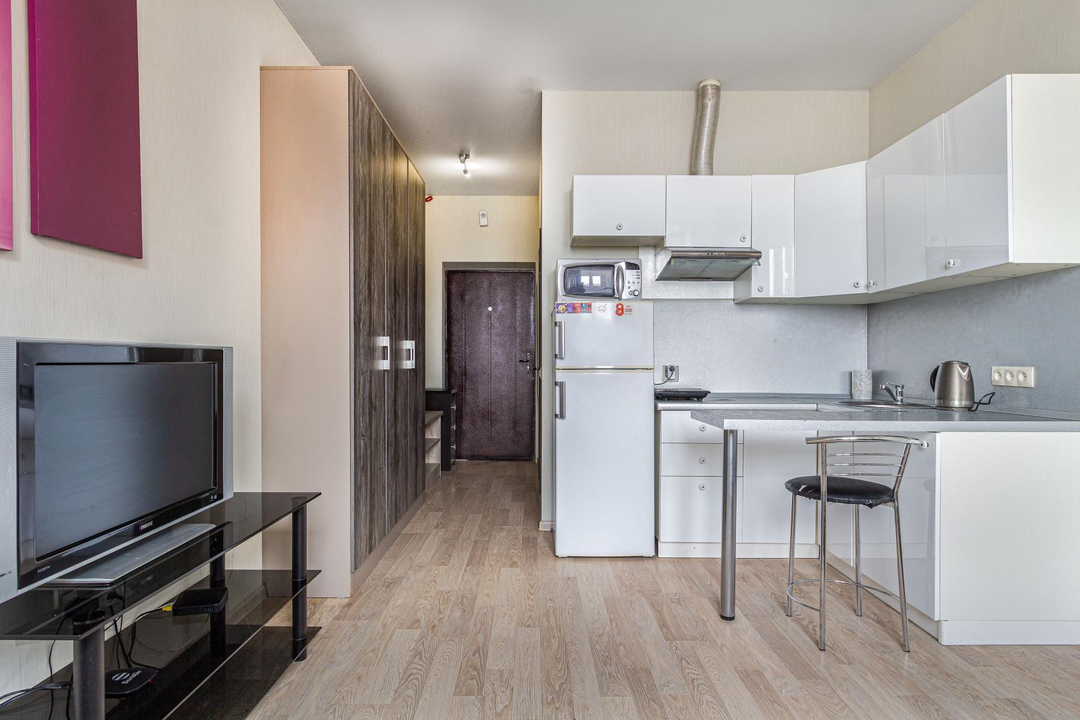Площадь объекта 18.7м2. Высота потолка 2,7м. Кухня-Гостиная 13м2.
