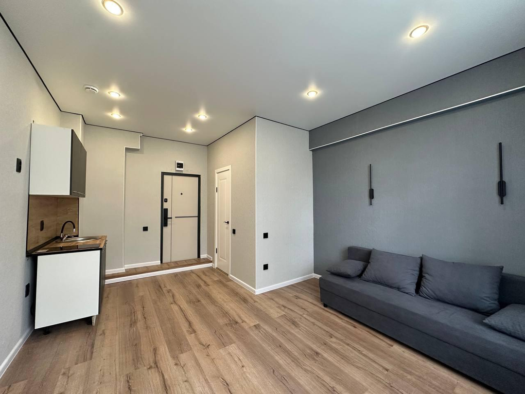 В квартире выполнено новый ремонт, готовое решение с зонированием пространства - своя кухня, современный санузел выложенный плиткой, обеденная и спальная зона.
