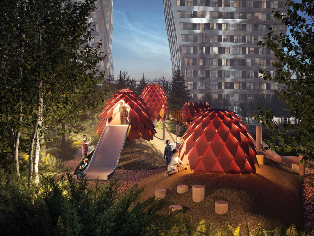 Инфраструктура комплексадетский сад и школа (планируется передать на баланс города к концу 2027 года);медицинский центр;фитнес-центр;супермаркеты, рестораны, кофейни на первых этажах; На первых этажах также запланированы коммерческие помещения для сдачи в аренду.