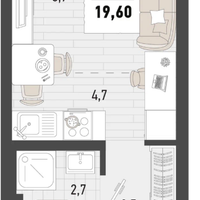 Студия, 19,6 м²