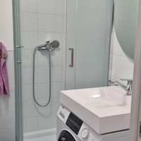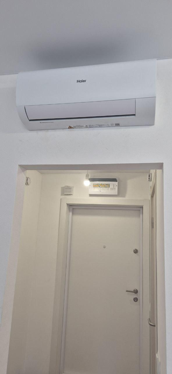 Полностью укомплектована: В студии уже установлены кондиционер, электрический полотенцесушитель, стиральная машина, новая сантехника (раковина, смеситель, шторка для душа), москитная сетка, варочная панель и вытяжка.Светлая и тихая: Окна студии выходят на спокойный детский сад, и в первой половине дня она наполнена солнечным светом.