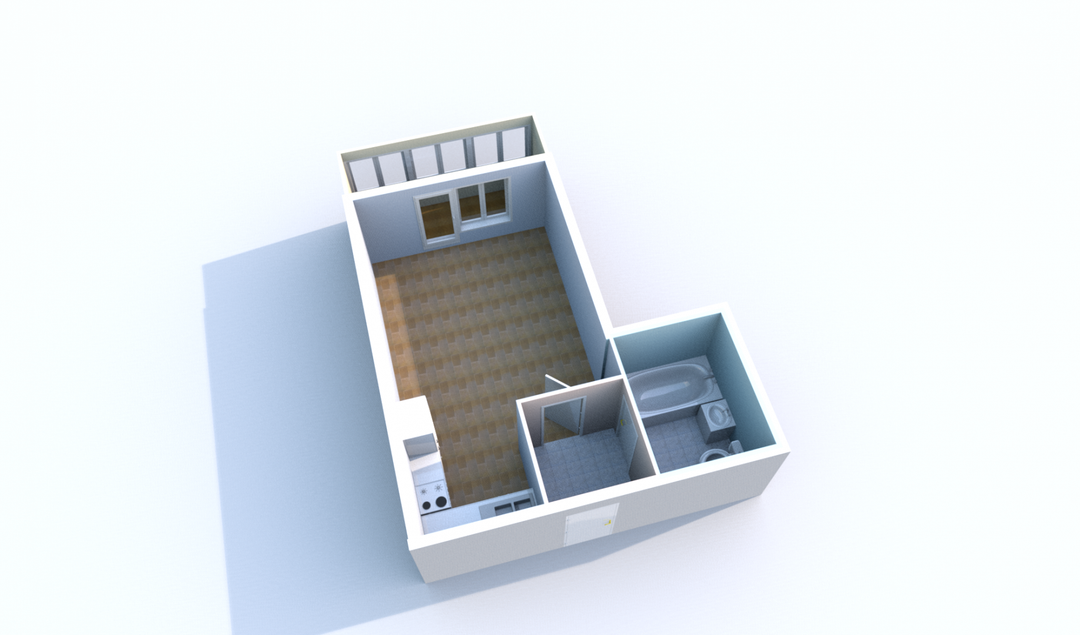 Студия имеет удобную планировку, коридор отделён от комнаты, санузел просторный. Просторный балкон с шикарным видом.