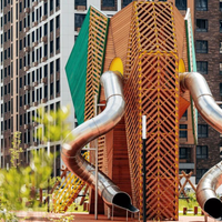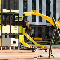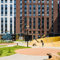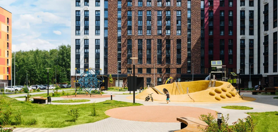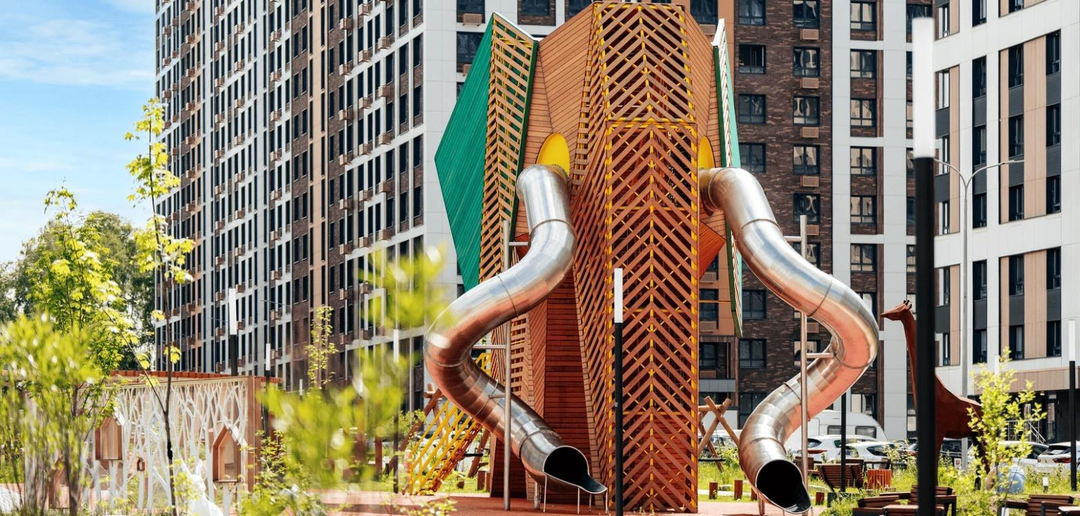 Благоустройство: во дворах-парках, закрытых от машин, навесы из растений. По благоустроенным бульварам, комфортно и безопасно гулять. Плейхаб с большой горкой в виде слона и игровым оборудованием.