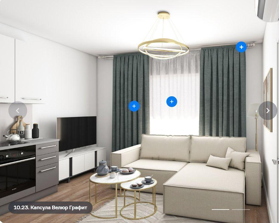 Высота потолков 3,15 метра. Общая площадь составляет 21,2 кв. м, из которых 10 кв. м - жилая зона. Просторная кухня-гостиная – 4,9 кв. м, раздельный санузел - обеспечат комфортное проживание.