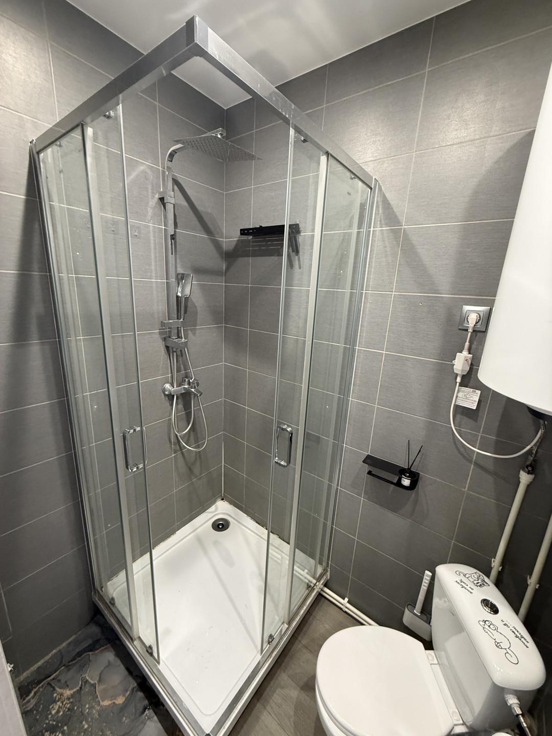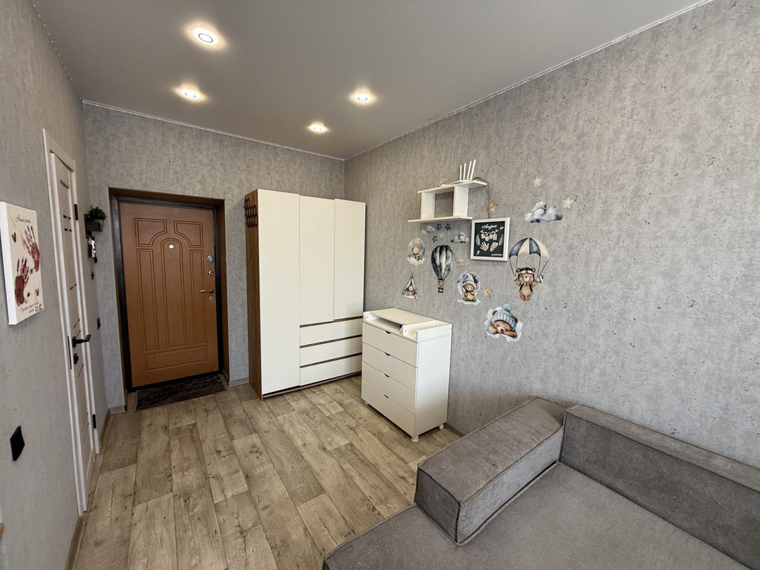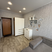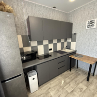 Уютная, стильно оформленная студия. Здесь всё сделано для комфортного проживания. Большая кухня, с широкой зоной готовки. Огромный угловой диван. Организованна объёмная зона хранения вещей. В сан узле установлена полноценная душевая кабина, бойлер, стиральная машина. Качественно отделан балкон, полностью застеклён.