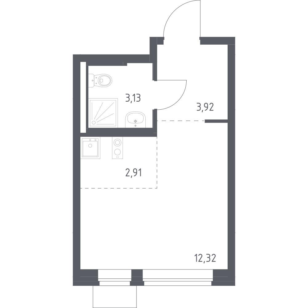 Комната 12.32м2 + кухня ниша 2.91м2.