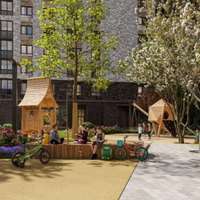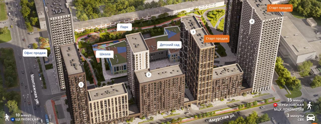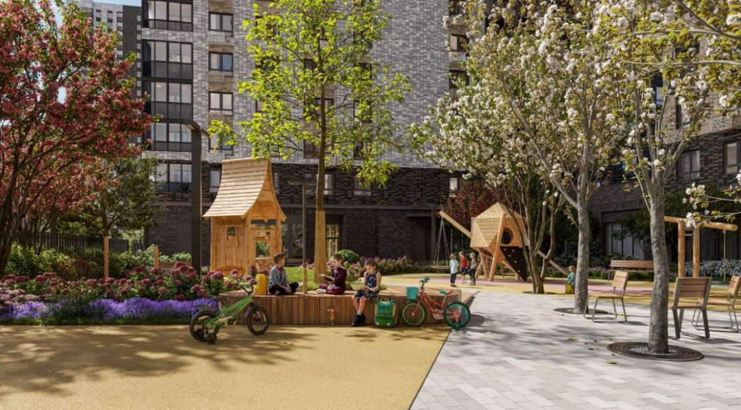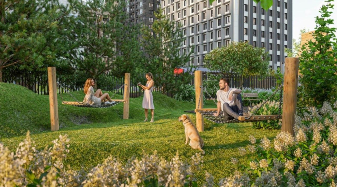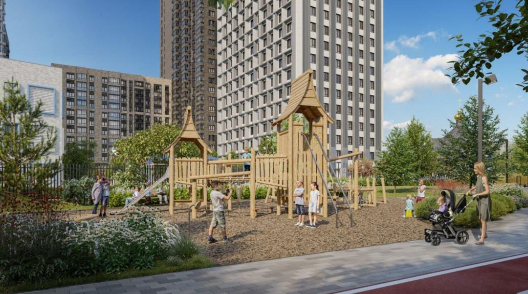 Активный досуг: Уличные тренажёры и закольцованные беговые и велодорожки. Пешеходные бульвары и детские площадки, включая скалодром. Зона для занятий йогой и спортивные площадки (теннис, стритбол, рампа для роликов).