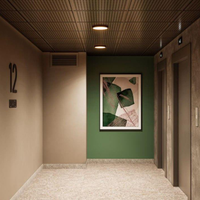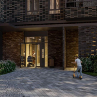 Дизайн: Входные группы оформлены с использованием предметов искусства и нестандартного озеленения, создавая уникальную атмосферу.