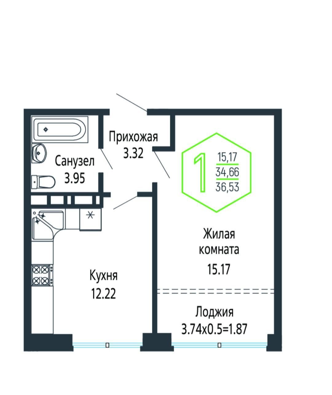 • Общая площадь 22,8 м²