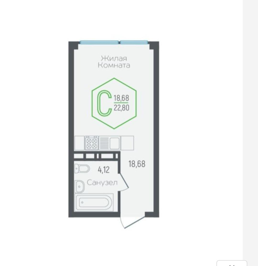 • Общая площадь 22,8 м²