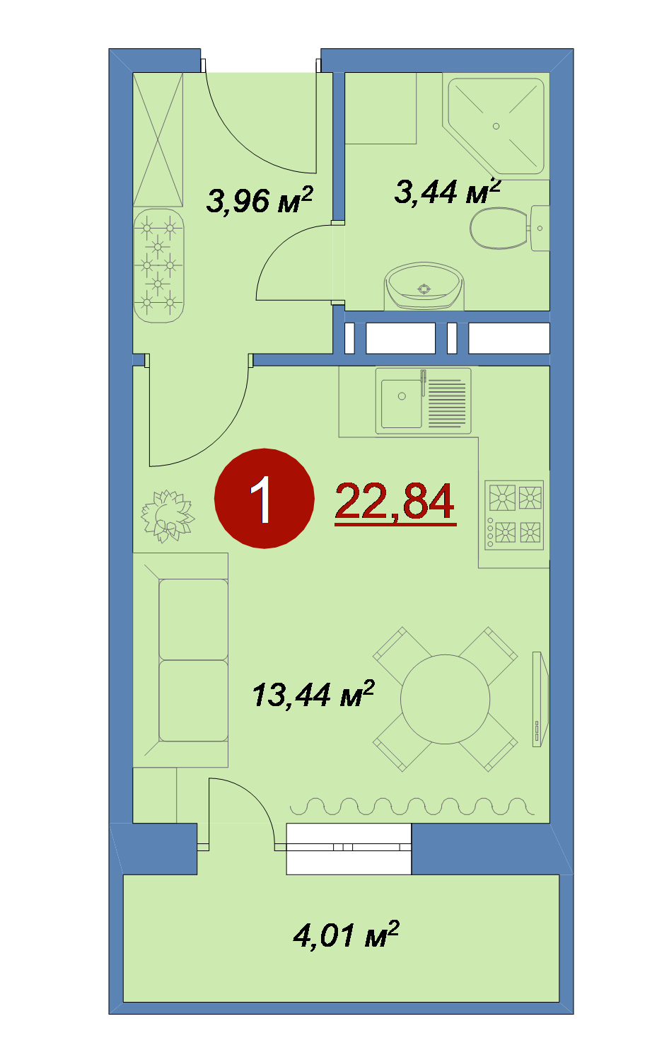 Продается квартира-студия общей площадью 22.84 кв.м в ЖК "Новые Островцы" квартал "Южный" (3 корпус) без отделки, балкон застеклен.
