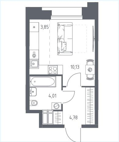 Продается Студия в ЖК «Тропарево Парк» Студия расположена на 11 этаже 23-этажного жилого дома. Дом сдан!!! Уютная светлая квартира с отличным видом из окна. Комната 10.13 м2, кухня -ниша 3.85 м2 , прихожая 4.78 м2, санузел совмещенный 4.01 м2