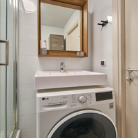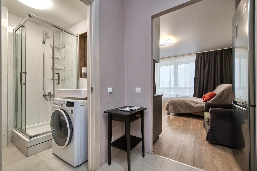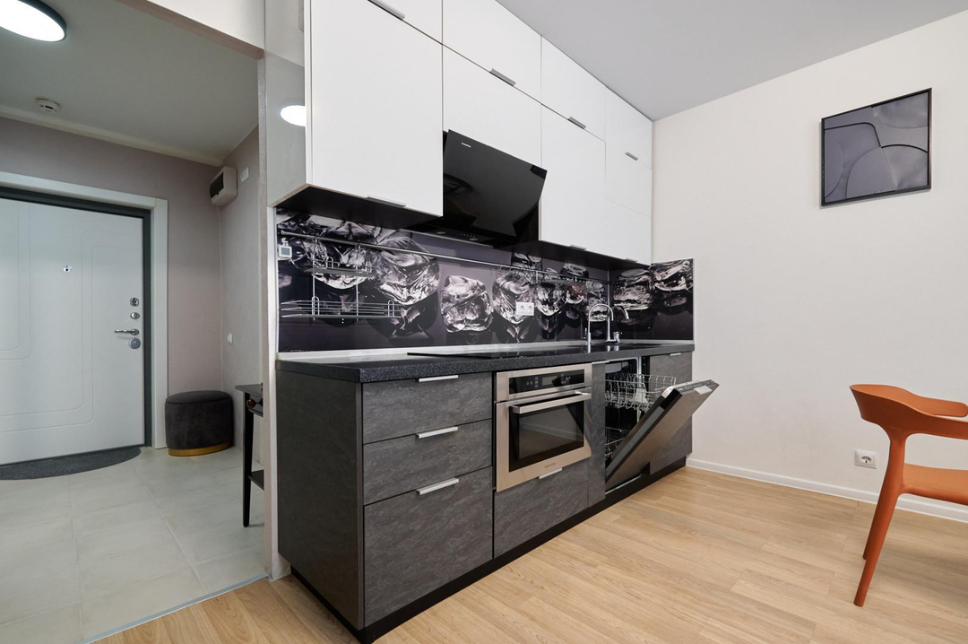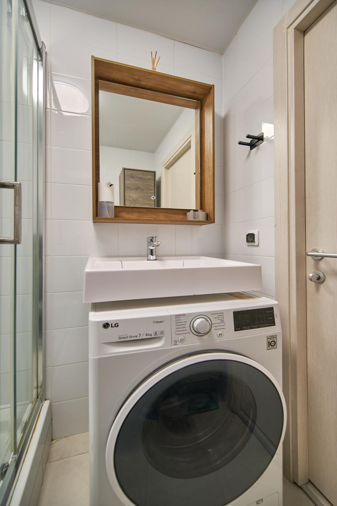 Кухня полностью укомплектована встроенной техникой, посудомоечной машиной Bosсh холодильником LG. Установлены фильтры системы очистки воды. Стиральная машина с сушкой LG.