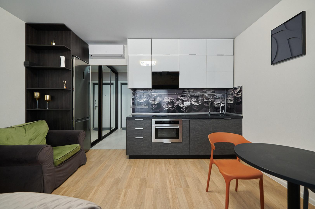 Установлена дорогостоящая мебель, выполненная на заказ. Кондиционер премиального качества.
