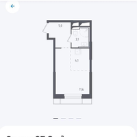 Уютная студия 23,8/11,6/4,1 кухня.
