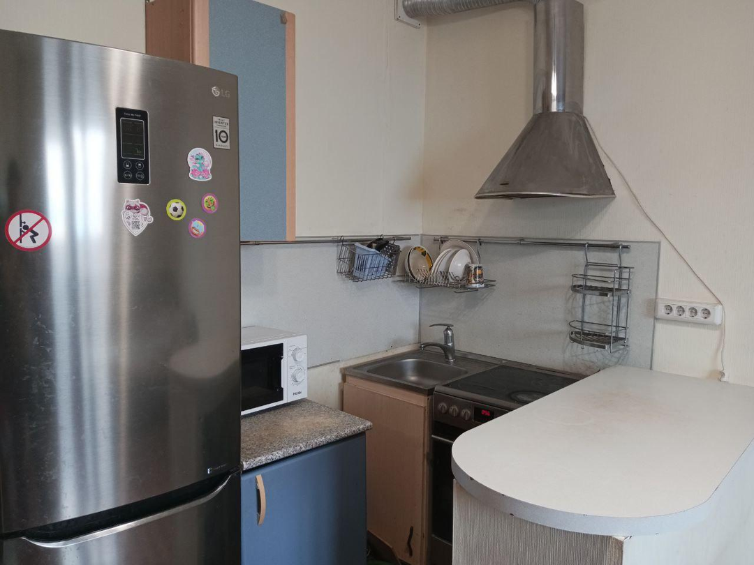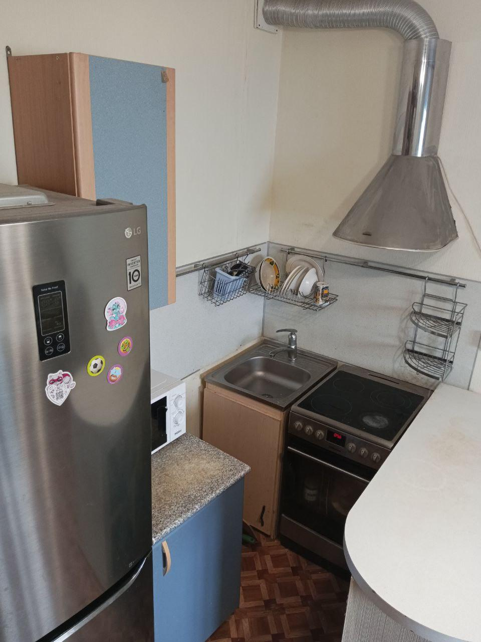 — Кухня: Встроенная техника (плита, холодильник, вытяжка, микроволновка) + гарнитур.