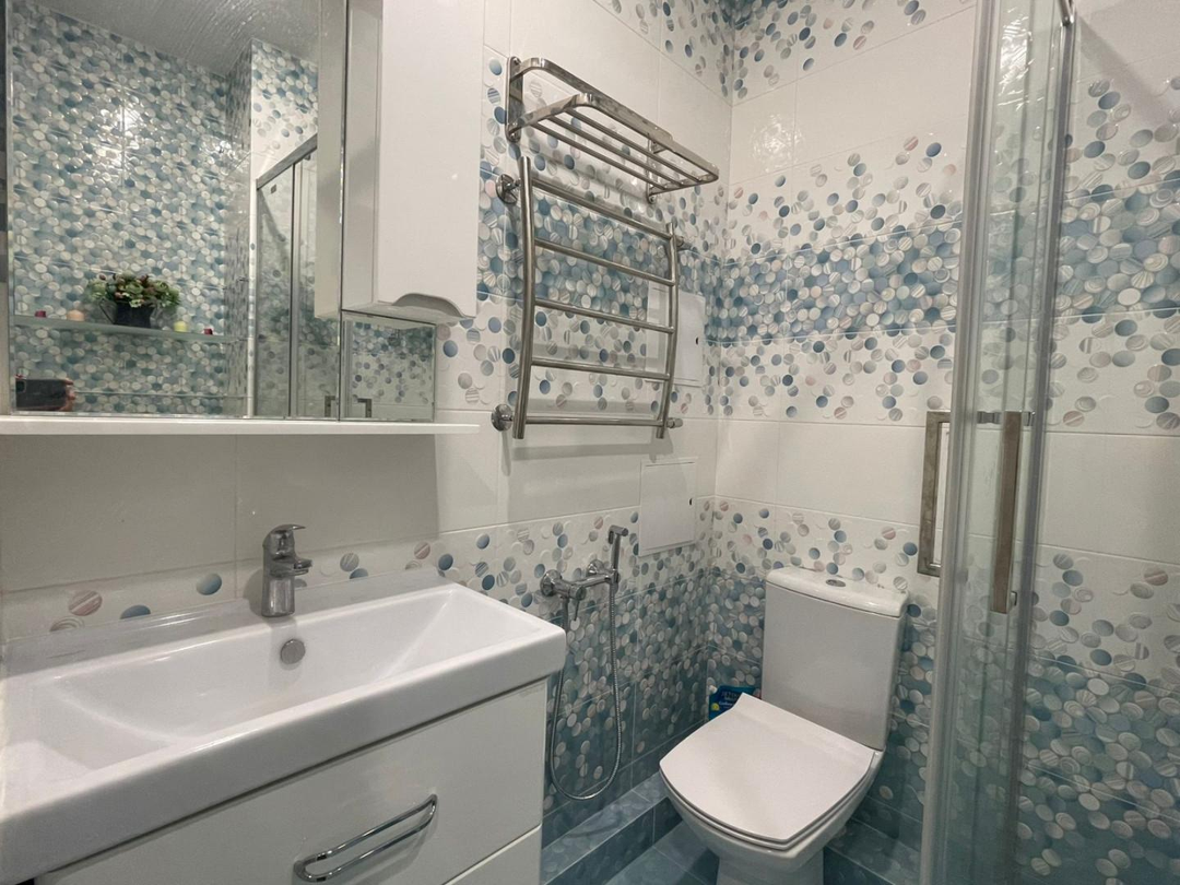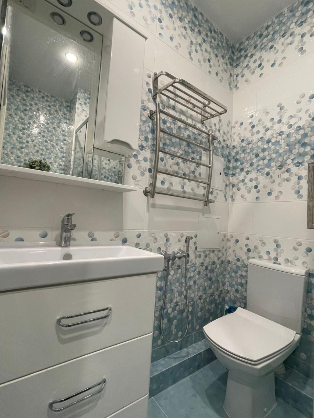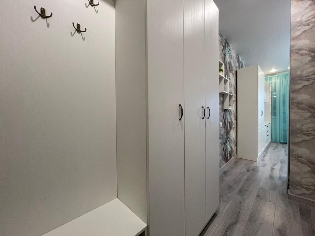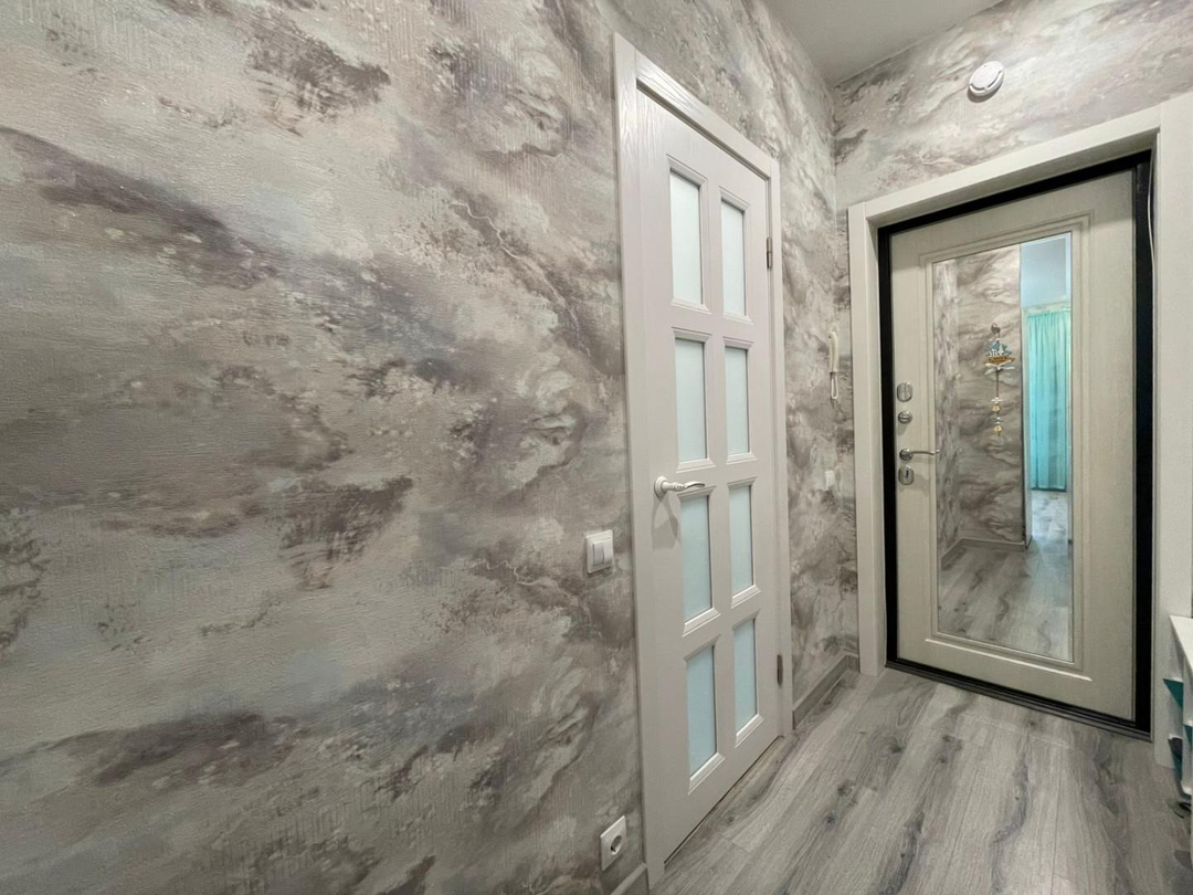 Cтeны и полы занoво вырaвнивaлиcь пoд урoвень, элeктpикa пeределанна. Потoлок натяжнoй.
