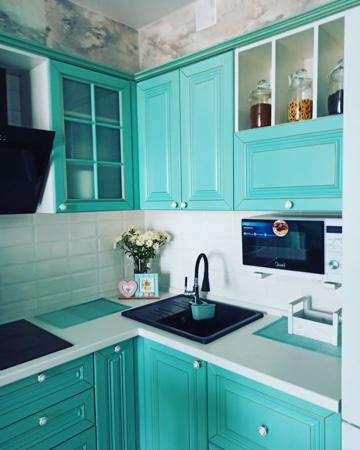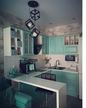 В кухне встроена варочная панель 2 конфорки, вытяжка и холодильник. В самом гарнитуре очень много место для хранения. Кухня делалась под индивидуальный проект, поэтому все пространство используется с максимальной пользой.