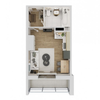 · Грамотная планировка: просторная комната, совмещенная с кухонной зоной, совмещенный санузел.