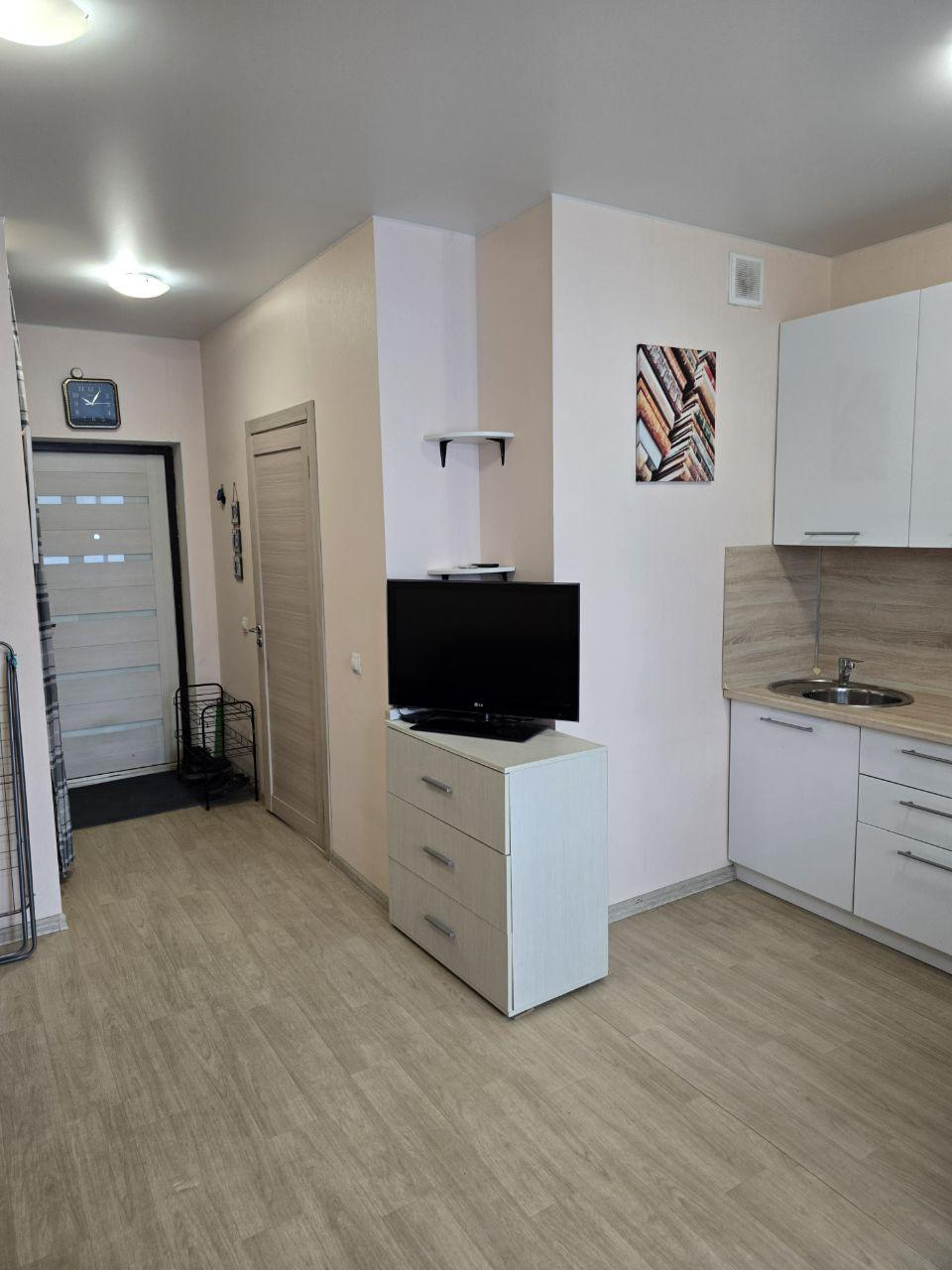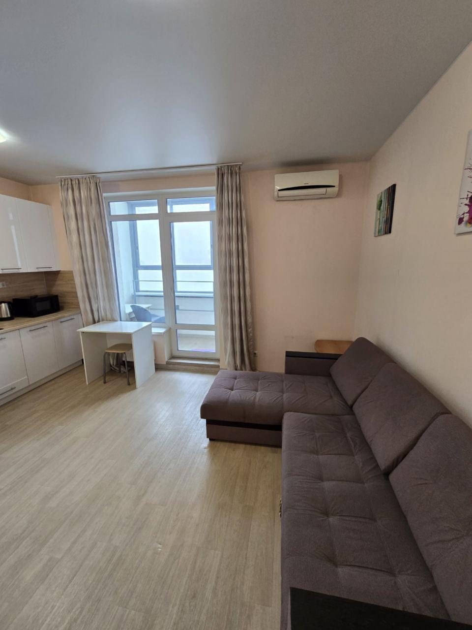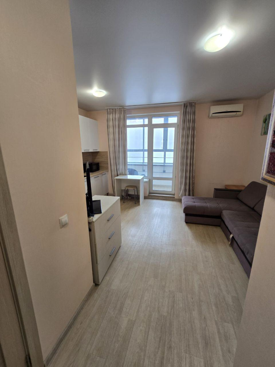 Предлагается просторная студия площадью 24,4 м² в жилом комплексе «Апрель». Просторная квартира обладает естественным светом и комфортной температурой благодаря удачной планировке. Интерьер выполнен в современном стиле, выдержанном в светлой цветовой гамме. Полностью оборудована кухонной мебелью, бытовой техникой и необходимой мебелью.
