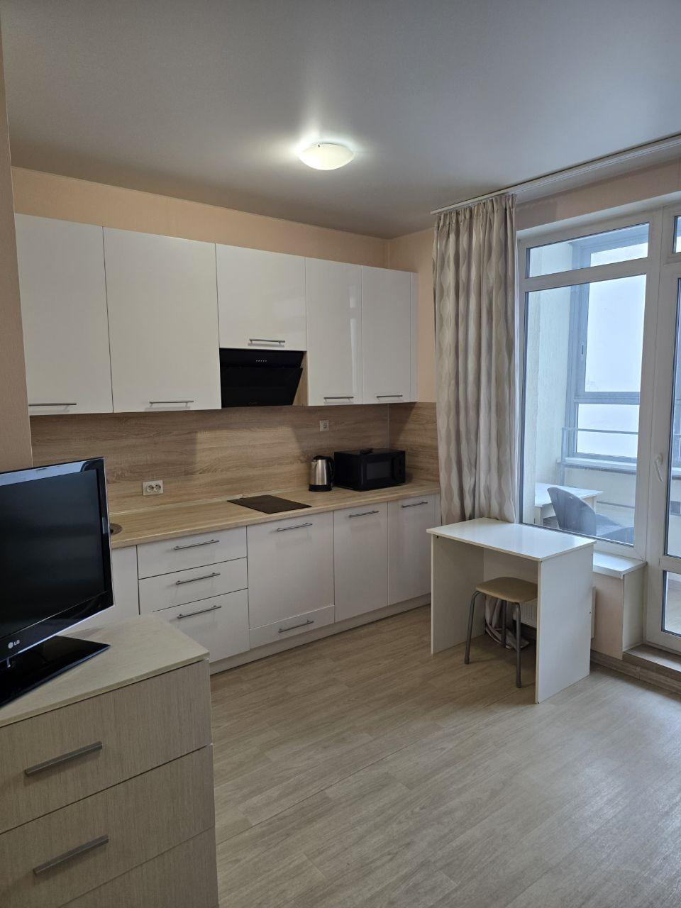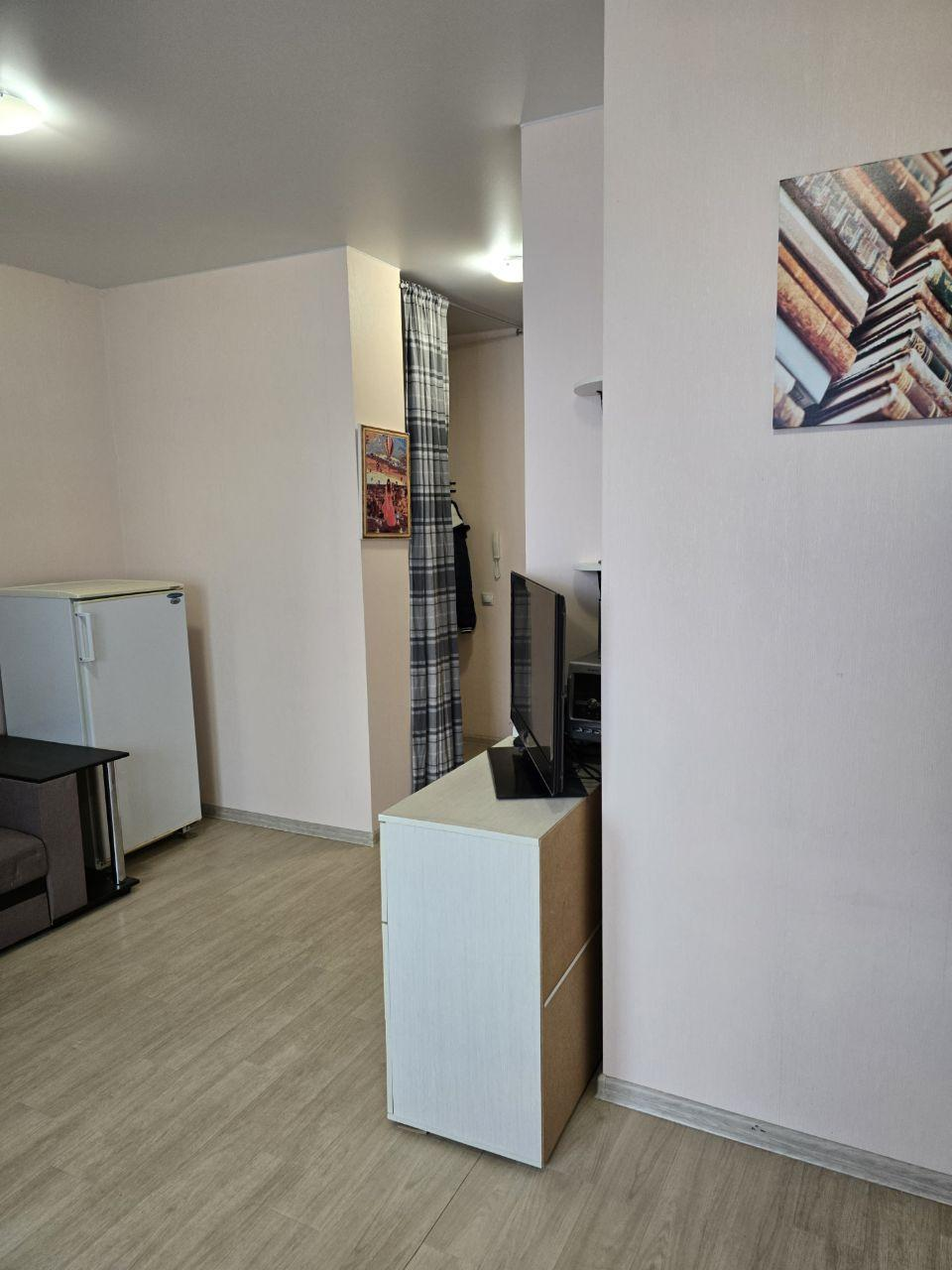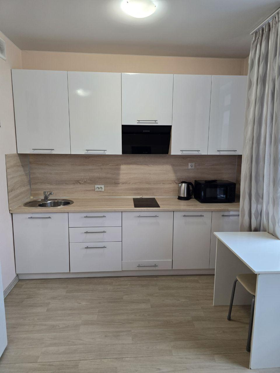 Предлагается просторная студия площадью 24,4 м² в жилом комплексе «Апрель». Просторная квартира обладает естественным светом и комфортной температурой благодаря удачной планировке. Интерьер выполнен в современном стиле, выдержанном в светлой цветовой гамме. Полностью оборудована кухонной мебелью, бытовой техникой и необходимой мебелью.