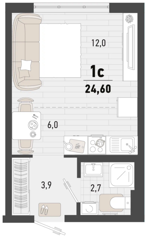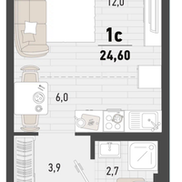 Студия, 24,6 м²