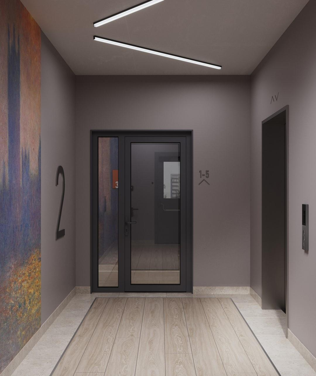 Дизайнерская отделка входных групп и собственная «картинная галерея» в холле.