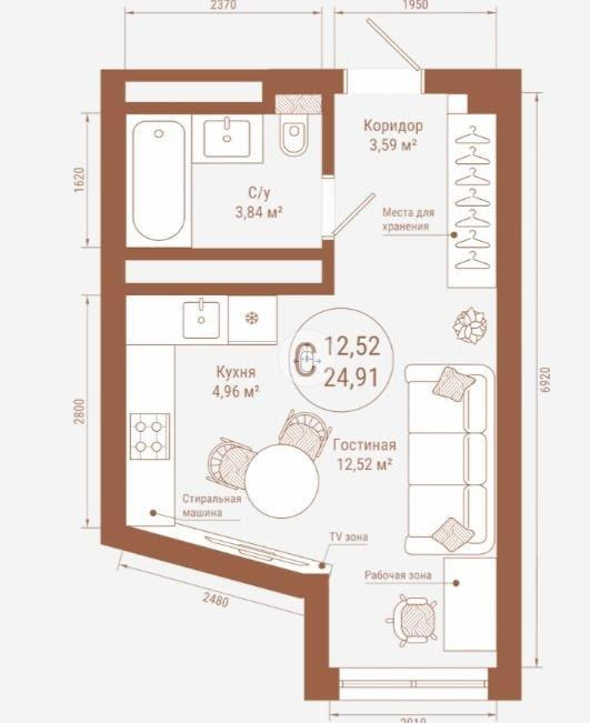 24,9 м²