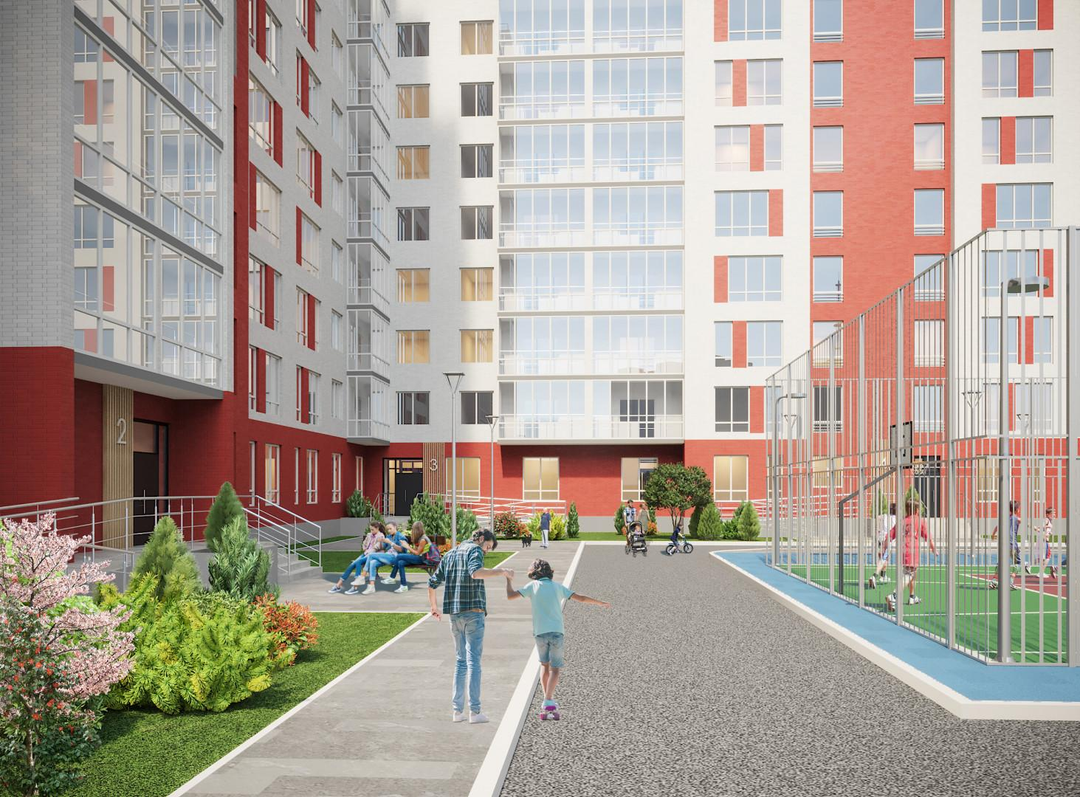 многоуровневый паркинг для машин, большая наземная парковка, есть муниципальный детский сад, открыта новая школа, на первых этажах открыты мини-маркеты, пекарня, кофейня, интернет-магазины, бытовой сервис, взрослая и детская поликлиники, большая детская площадка во дворе, также застройщик планирует небольшой ТЦ на территории ЖК, рядом с ЖК река, озеро, парк, все активно благоустраивается.