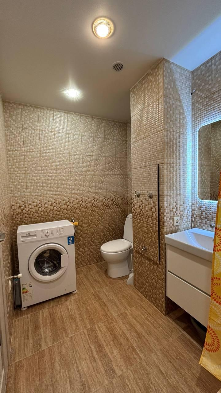 Санузел: Совмещенный, отделан кафельной плиткой — свежо и гигиенично, пол теплый.