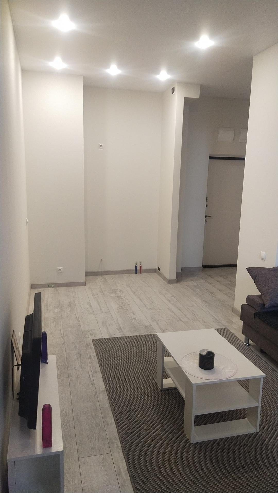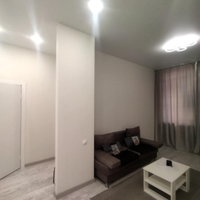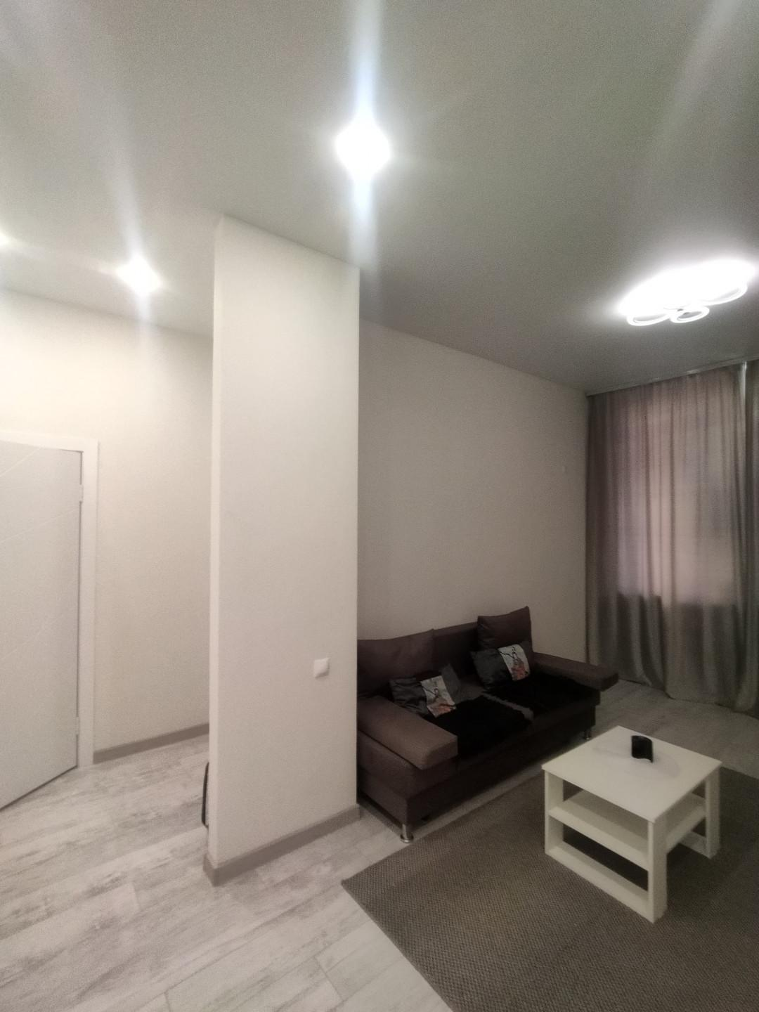 *В квартире выполнен ремонт с применением качественных строительных материалов. Натяжные потолки, точечные светильники, на полу ламинат.