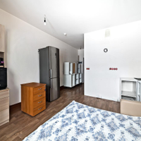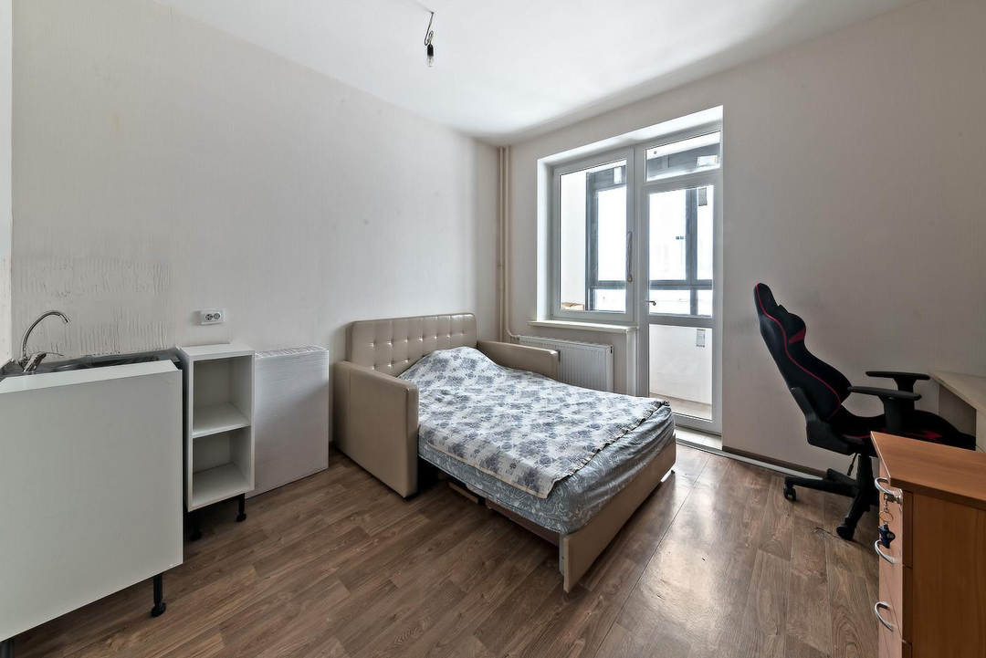 - Квартира расположена высоко на втором этаже, окна выходят во внутренний двор, где нет машин, обеспечивая тишину и спокойствие.