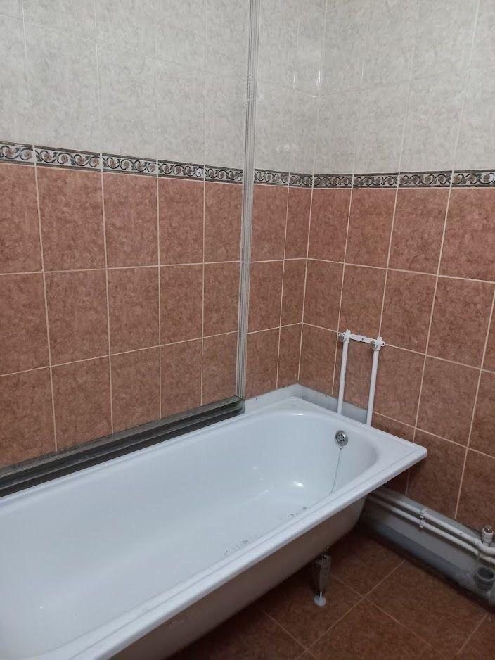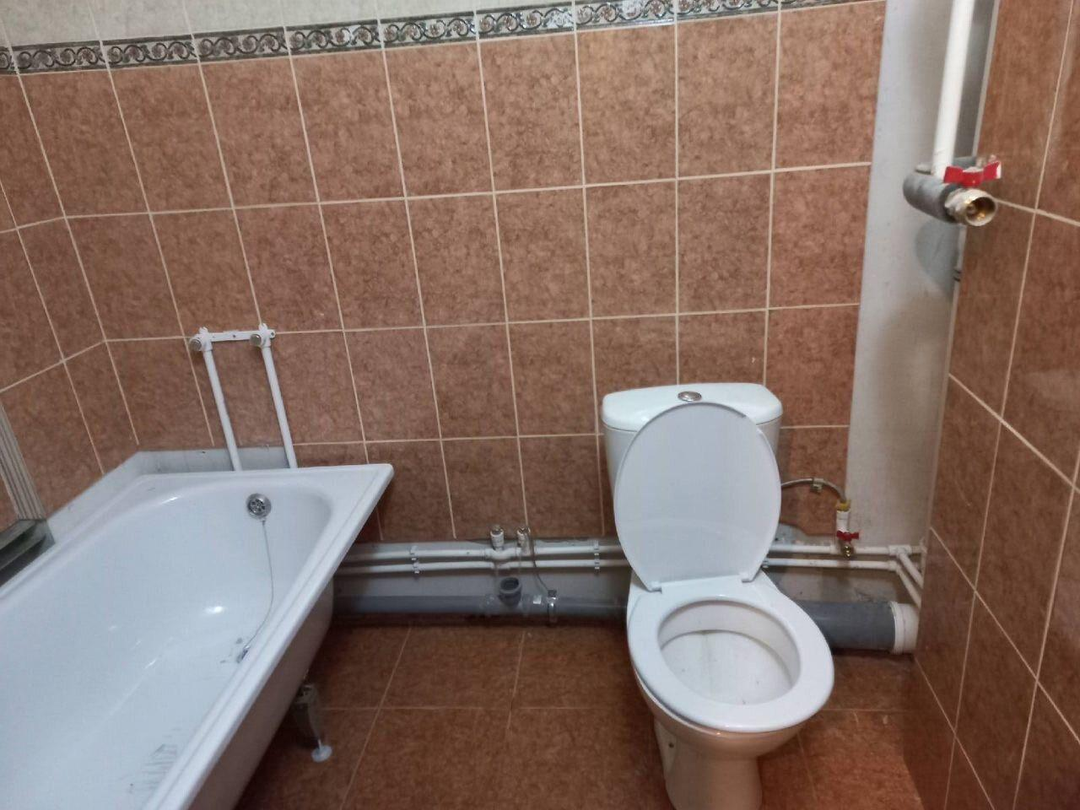Санузел совмещённый, полностью в кафеле, сантехника исправна, счётчики поверены — без скрытых вопросов.