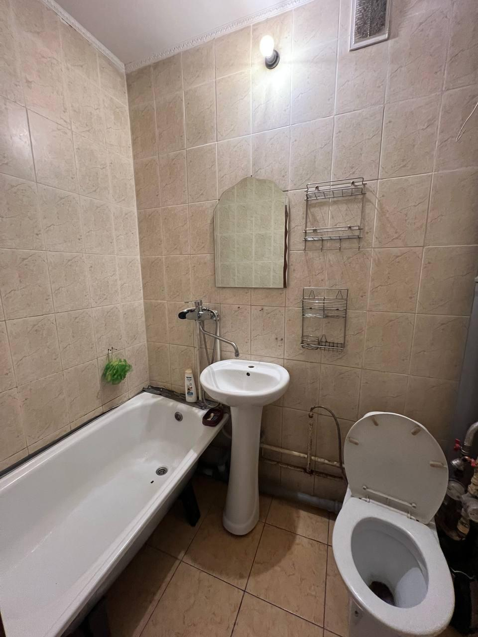 Санузел совмещенный, в ванной кафель на стенах и на полу.