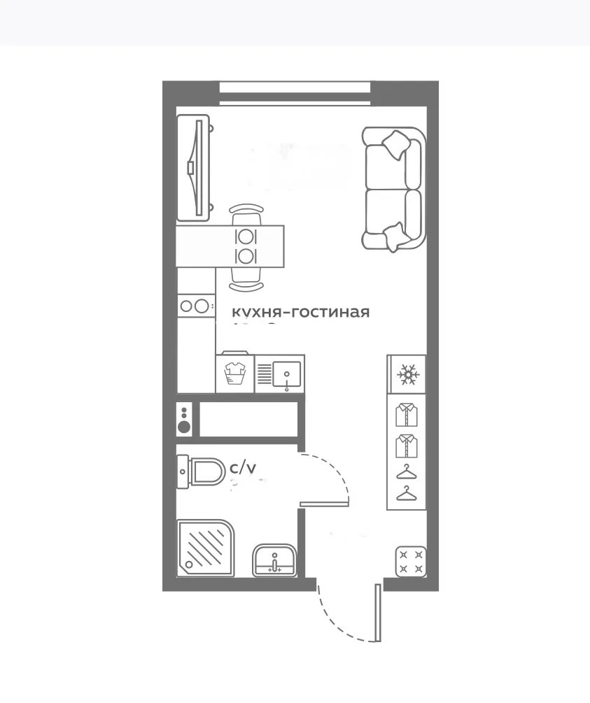 О студии (25 м², 5 этаж):