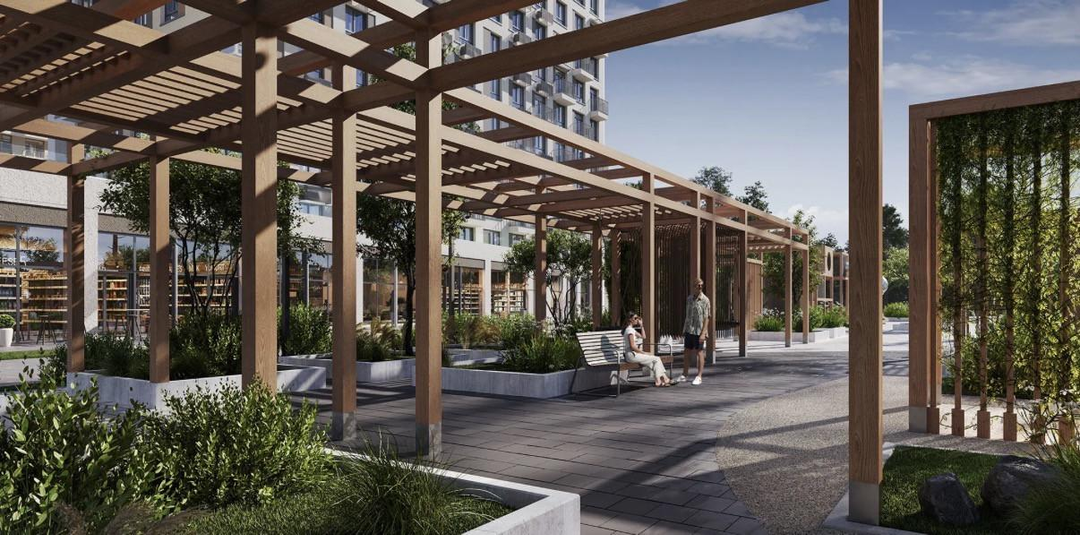 Жилой комплекс комфорт-класса, проект комплексной застройки с собственной инфраструктурой: предусмотрено строительство школы и детских учреждений, благоустройство дворовых пространств.