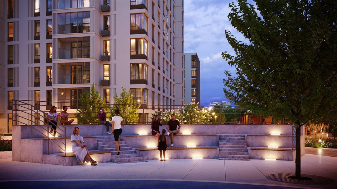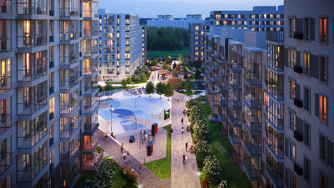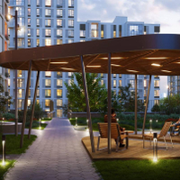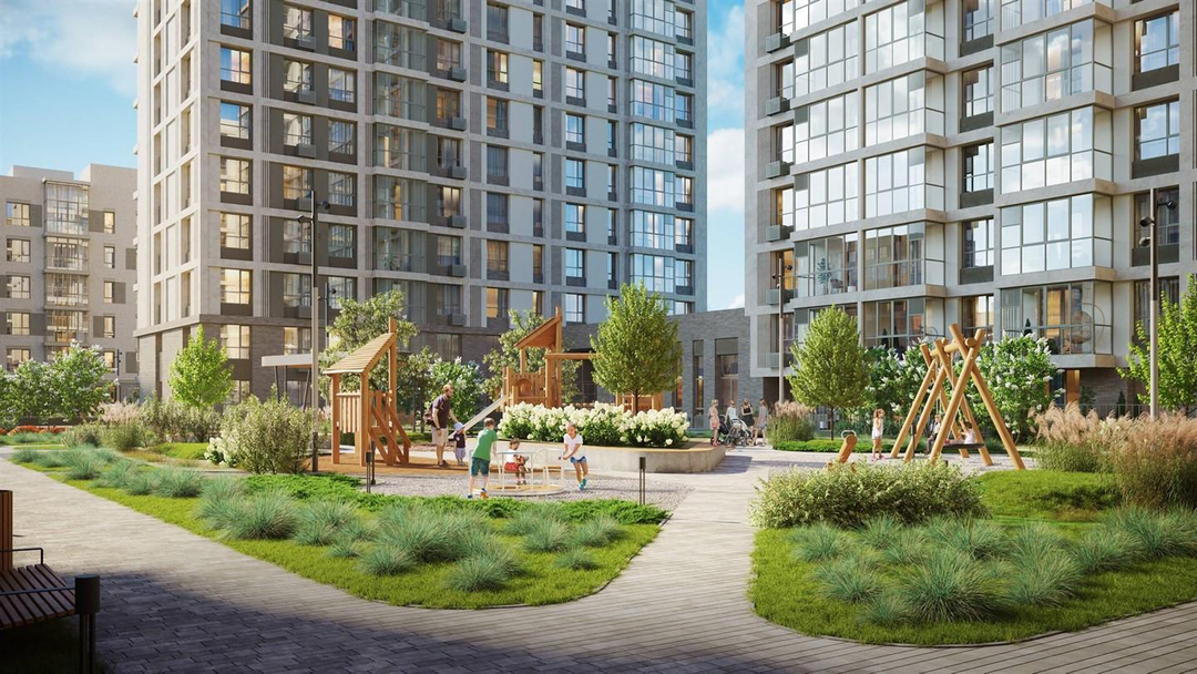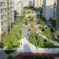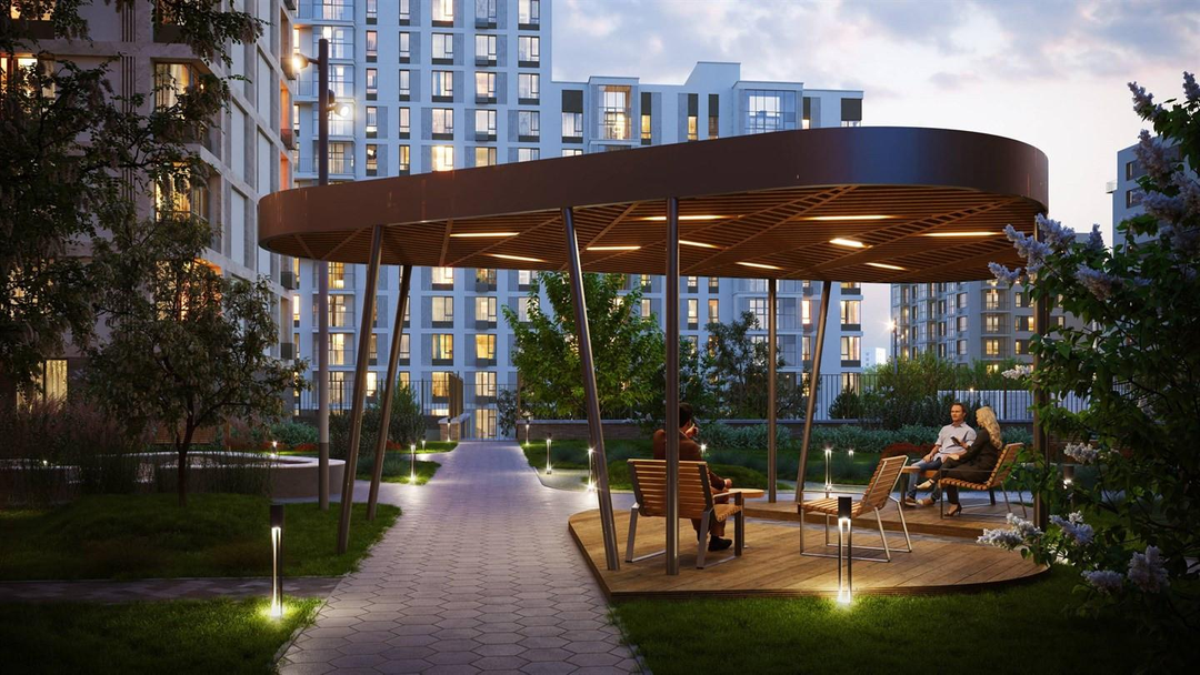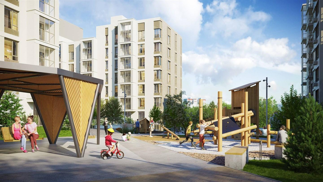Проектом благоустройства предусмотрено парковое ландшафтное озеленение и освещение. Здесь есть прогулочная зона – сквер, амфитеатр с павильоном, спортивные площадки для занятий паркуром и воркаутом, место для зимней горки, безопасные игровые площадки для детей младшего, среднего и старшего возраста, велодорожки и велопарковки, тихие зоны отдыха, качели для взрослых.