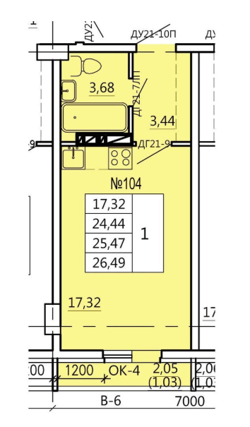 • Общая площадь 26,5 м²