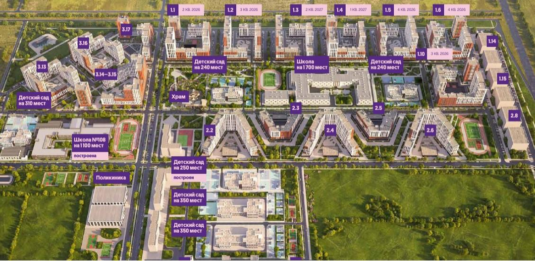 Новознаменский - это активно развивающийся район, будущий административно-деловой центр Краснодара. Согласно концепции развития северо-восточной части Краснодара здесь появятся самый крупный медицинский кластер в ЮФО, социальные объекты, учебные заведения профессионального образования, многопрофильный университетский кампус, филиал КубГУ, общественно-деловые зоны, физкультурно-оздоровительные комплексы, торговые центры, музеи, дома культуры, пожарные депо, аквапарк и др. * 2 минуты до М-4 «ДОН» * 10 минут до ТЦ OZ MОЛЛ * 10 минут до аэропорта * 20 минут до ТЦ «СБС Мегамолл» Жилой комплекс «Первое место» - один из самых масштабных проектов в России площадью 71 га, который расположен в районе Новознаменском, Карасунском округе на северо-востоке Краснодара. Имеет удобный выезд на трассы М-4 «Дон» и «Джубга-Сочи» в направлении Черного моря и горнолыжных курортов. Комплекс включает 18 кварталов, состоящих из 31 дома переменной этажности от 8 до 18 этажей, собственный парк 9 га. 2 школы: действующая на 1 100 мест и новая на 1 700 мест 6 детских садов, один из которых уже открыт2 поликлиники: детская и взрослая Жителям жилого комплекса будут доступны собственный фитнес-центр, кафе, рестораны и магазины. Для доступа в жилую зону будет использоваться специальный смарт-ключ или мобильное приложение. Во входных группах будут также предусмотрены места для хранения колясок, велосипедов, почтовая комната для получения прессы и хранения интернет-заказов. На территории жилого комплекса пешеходный бульвар длиной 850 метров, а также детские и спортивные площадки, мангальные зоны и зоны отдыха. Кстати, двор будет закрытым. Кроме того, в рамках проекта будет возведен Храм, вдохновленный разрушенной Успенской церковью на Дубинке, который станет частью парковой зоны жилого комплекса. На территории комплекса:Первый тематический пешеходный бульвар «Круг семьи» протяженностью 1,5 км с локациями активного отдыха для детей и взрослыхПервая «Аллея Героев СВО»Первый проект, в котором 8 км велосипедных дорожекПервая инновационная площадка для выгула и дрессировки собак, разработанная лучшими кинологами страныПервый уникальный храм иконы Божьей Матери «Знамение»СкверБезопасные детские площадкиСпортивные площадкиМангальные зоныСобственная торговая галерея На первых этажах многоуровневых парковок - «паркхабов» - разместится более 61 тыс. м2 коммерческих помещений. Созданный с учетом всех современных стандартов, ЖК предлагает разнообразные планировки квартир, начиная от уютных студий до просторных трехкомнатных апартаментов. Каждая квартира возвышена до уровня премиум-класса, с применением высококачественных материалов и инженерных решений.