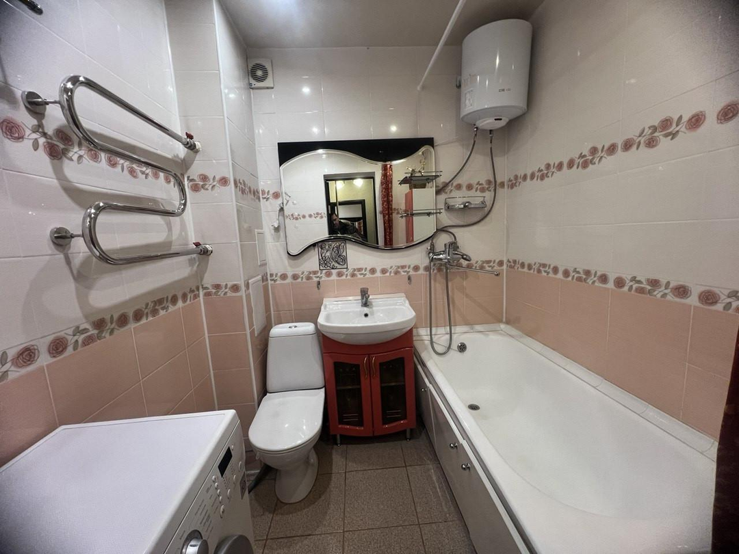 - Санузел совмещён, выполнен красивый и качественный ремонт плиткой, сантехника не требует никаких замен.