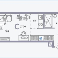 Продается Студия в ЖК «Страна.Озёрная» Студия расположена на 25 этаже 30-этажного жилого дома. Дом сдан!!! Уютная светлая квартира с отличным видом из окна. Комната 13.7 м2, кухня -ниша 2.6 м2 , прихожая 7.1 м2, санузел совмещенный 4.3 м2 .