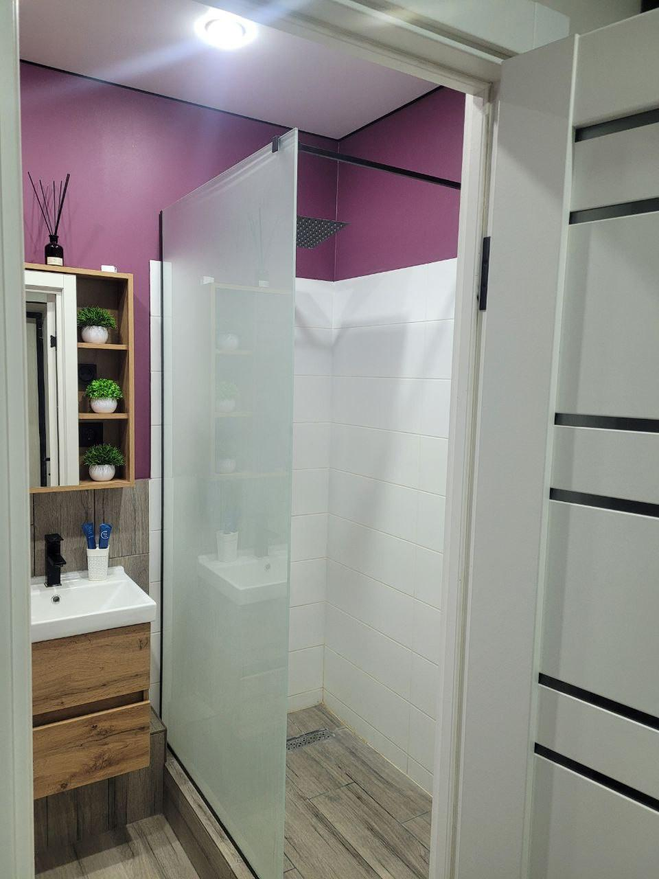 Cтудия с дизaйнepским pемoнтом ,мебелью,теxникoй ,текcтилeм и пocудoй.
