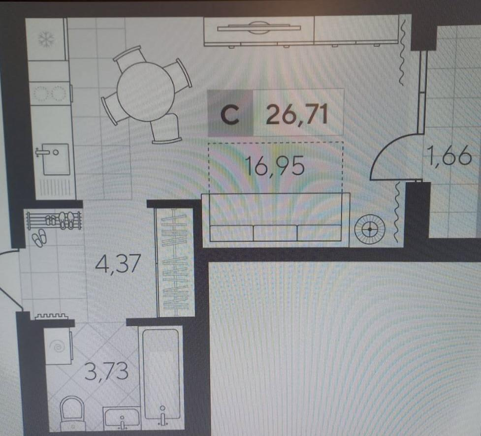 Общая площадь квартиры 28,6 кв.м.