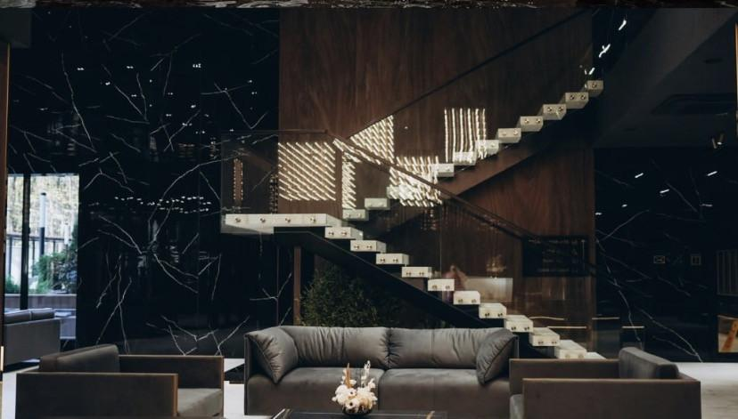 Повышенный комфорт: просторные дизайнерские холлы с отделкой керамогранитом, лифты, колясочные и комнаты для хранения велосипедов.