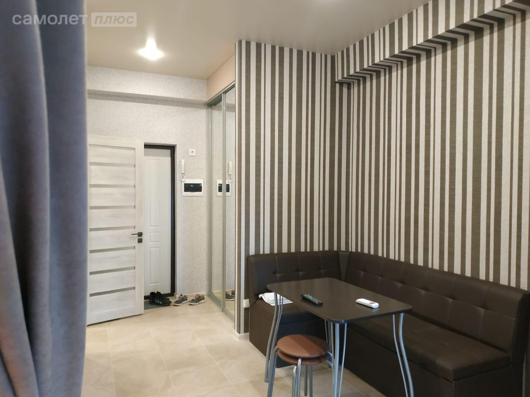 Квартира оборудована всем необходимым для комфортного проживания мебелью и техникой . вместительная гардеробная .. в обеденной зоне просторный раскладной диван с большим местом для хранения . парящая кровать с подсветкой ..