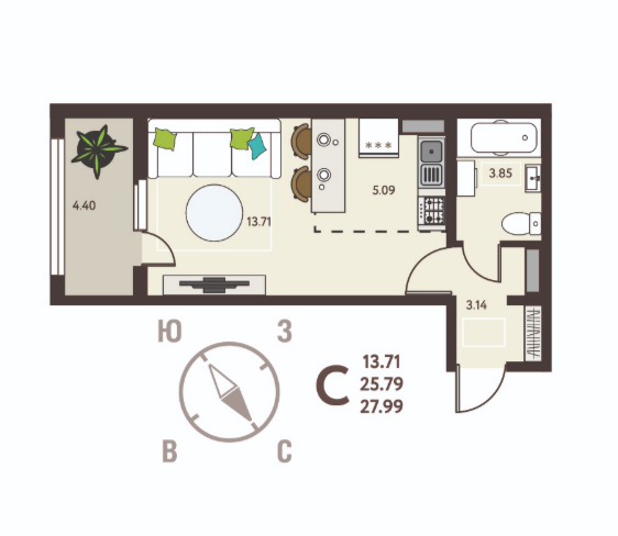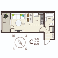 Предлагаем вашему вниманию квартиру-студию на 9 этаже в замечательном ЖК.