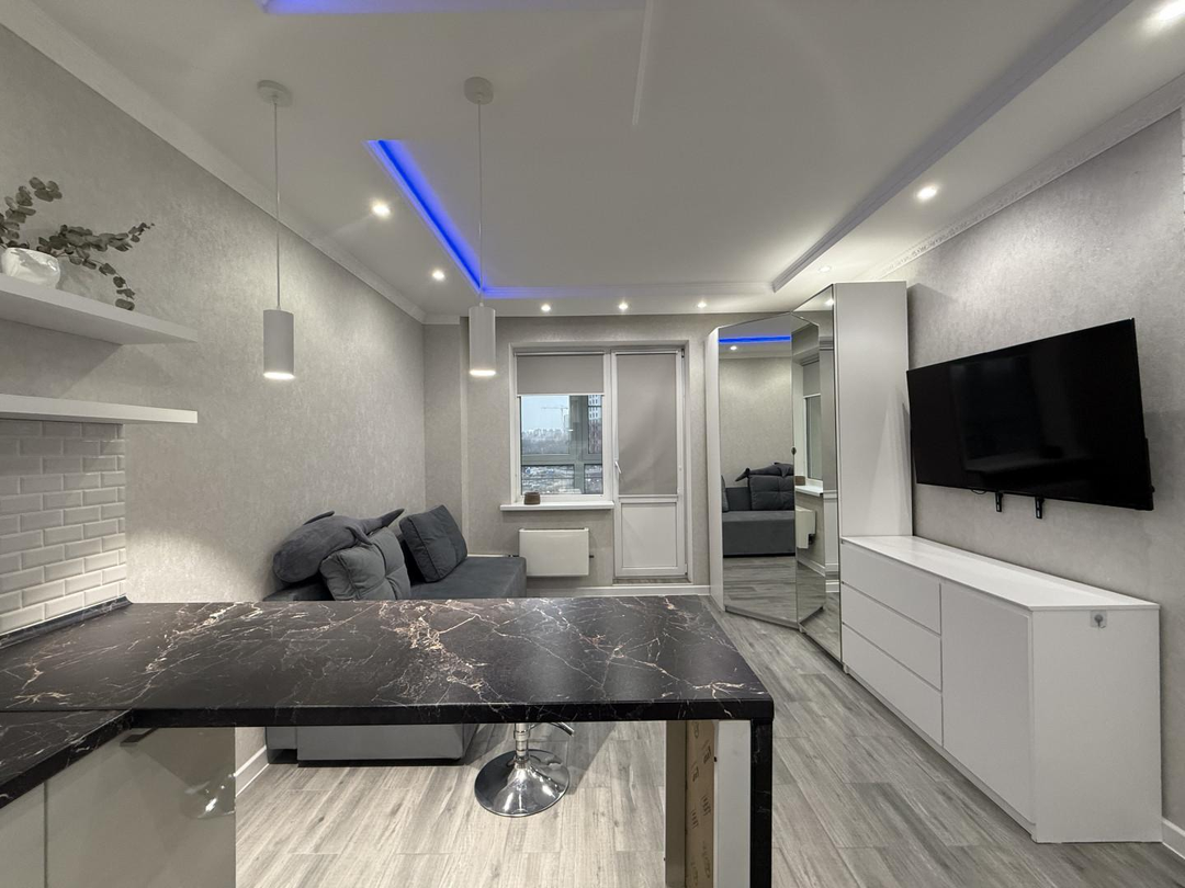 В продаже уютная студия с современным новым евро ремонтом. Качественно выполненный ремонт из износостойких и высокого уровня материалов с заменой электрики и сантехники . Делали для себя! Площадь всей квартиры в качественной плитке, включая балкон ( застекленный). Теплый пол для вашего комфорта и управления климатом в квартире. Квартира очень теплая зимой . Сделана шумоизоляция что позволяет более приватно и спокойно отдохнуть дома. Окно выходит на солнечную сторону, благодаря этому свет наполняет всю площадь. Вся мебель и техника остается новому владельцу, заезжай и комфортно живи.